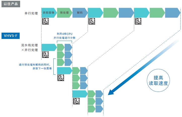 这项功能可以自动选择设定,能够更大限度地减少读取时间波动。该功能通过应用预处理滤镜和设定条件,来确保代码的理想质量,并将读取时间波动最小化,从而缩短读取时间。