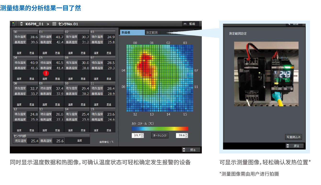 利用特定算法预测升温变化,通知异常发热的危险度。即使在环境温度变化较大的环境下,也可预知设备的异常发热。