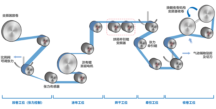 ■ 涂布区为连续涂布,涂布辊采用直驱电机驱动,模拟量控制。