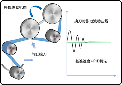 From:采用传统的气缸切刀,由于抬刀时的扰动量无法估算,仅靠PID进行调节,张力波动大