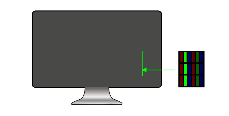 面板的每个像素由红绿蓝三元色组成,目前较为常见的坏点,是颜色亮度高于正常值的像素亮点,例如出现绿色坏点(如下图所示),因此需要进行坏点的修复。