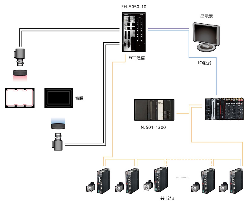 利用华体会(中国)机械自动化控制器NJ/NX系列内置的飞拍技术,以及高速图像处理系统FH系列,解决了高速移动中拍照位置的准确性以及图像的快速读取和处理,减少了因拍摄确认造成的设备停顿,促进了设备工艺的升级。